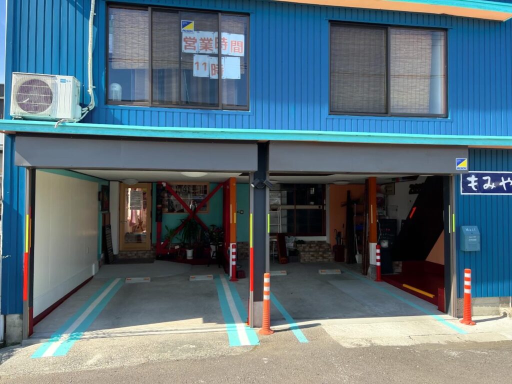 建物横に車が止めれるような空きスペースがありますが、ご近所様の土地でもみ屋八の私有地ではありませんので、お車は止めないようにお願い致します。