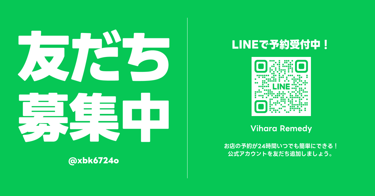 公式LINEは、Vihararemedyとありますが、もみ屋八のアカウントです。
